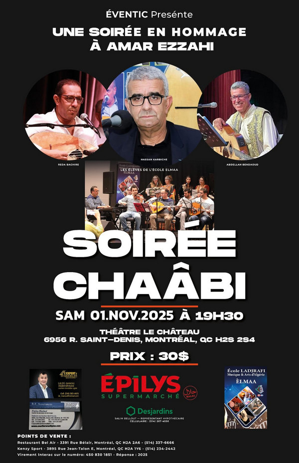 Eventic vous présente une soirée hommage à Amar Ezzahi. Admision 30$