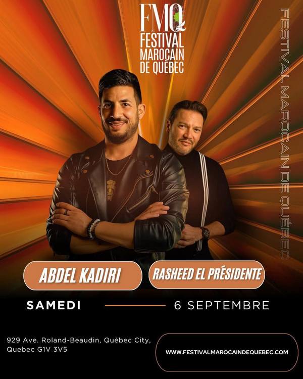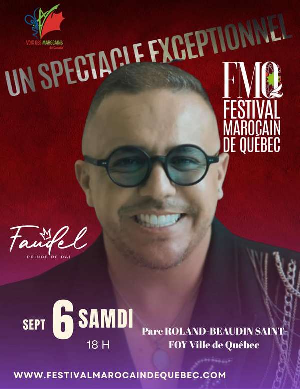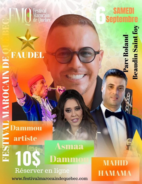 avec le 6 septembre : concert au Parc Roland-Beaudin à Saint-Foy avec FAUDEL, DAMMOU ARTISTE, ASMA DAMMOU, MAHID HAMAMA, Salma Rachid, Abdel Kadiri Rasheed El Presidente