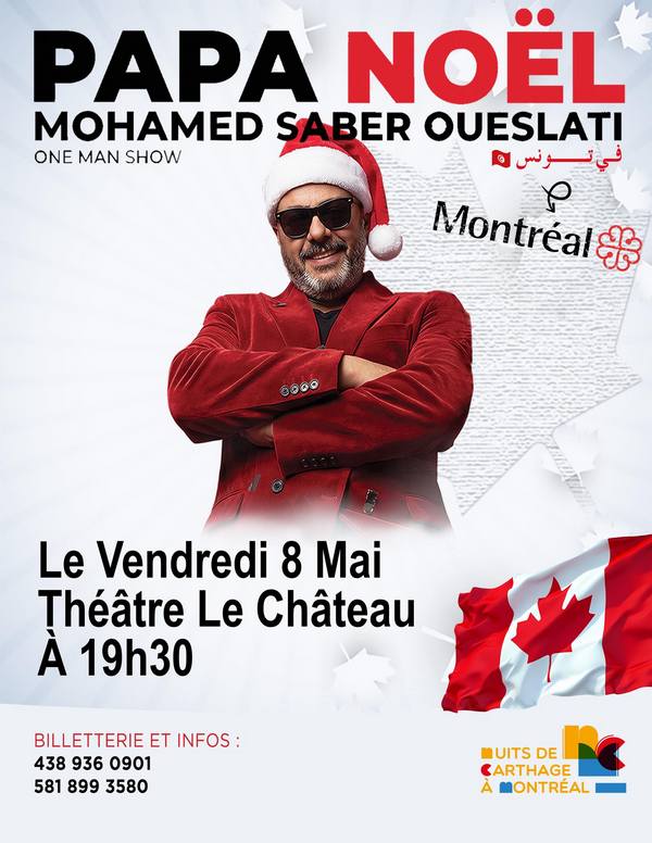 Carrefour Culturel Sésame de Québec et Les Nuits de Carthage à Montréal sont fiers et heureux de présenter le spectacle qui fait sensation en ce moment en Tunisie ( et bientôt partout ailleurs 😉 ) « Papa Noël en Tunisie » au Canada.