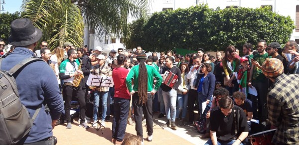 عبر وقفة رمزية افتتحت قبيل منتصف النهار بجوار ساحة البريد المركزي في العاصمة، حرص الفنانون على أداء وصلات موسيقية غنائية « مناهضة » للنظام ومطالبة بـ »تحرير » الجزائر.