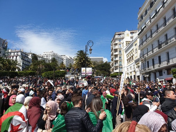 ووسط أجواء خيالية، يردد المتظاهرون بصوت واحد: « لا لبن صالح .. لا للحكومة .. لا لبلعيز .. ولا لكل رموز النظام »، كما أبرز المحتجون رفضهم لتعيين عيد القادر بن صالح كرئيس للدولة بالنيابة.