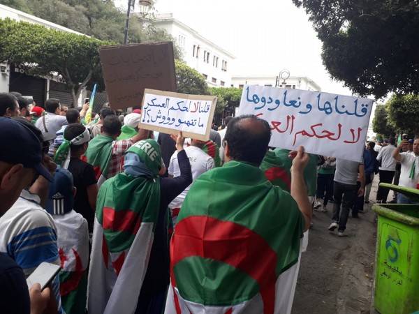 وبشكل متجدد، ردد المتظاهرون السلميون هتافات مناهضة للفريق أحمد قايد صالح، ورفعوا لافتات: « الڨايد ديڨاج ».