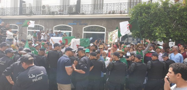 الساعة 10.30: المتظاهرون يرددون عدة أناشيد وطنية ويطالبون بإطلاق سراح سجناء الرأي والمساجين السياسيين، ويدعون للإفراج عن المجاهد لخضر بورقعة