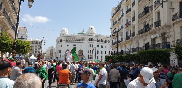 الساعة 13.45: انطلاق مظاهرات حاشدة بالعاصمة، مباشرة بعد توافد قوافل ضخمة من أعالي شارع ديدوش مراد وساحة أول ماي