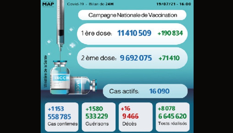 The post 1.153 cas, près de 9,7 millions personnes complètement vaccinées appeared first on MapMarrakech.