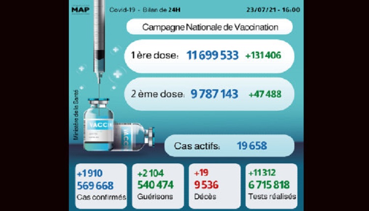The post 1.910 cas, près de 9,8 millions personnes complètement vaccinées appeared first on MapMarrakech.