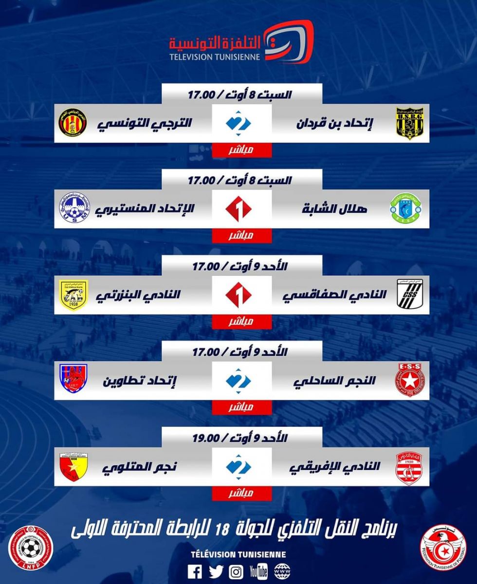 La télévision nationale a dévoilé le programme de diffusion des matches de la 18ème journée de la ligue 1.