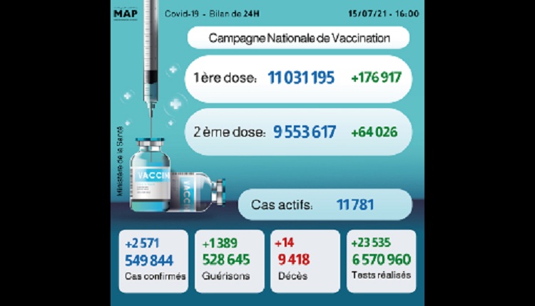 Le nombre de primo-vaccinés est de 11.031.195, alors que celui des personnes complètement vaccinées (1ère et 2ème doses) s’élève à 9.553.617, a précisé le ministère dans son bulletin quotidien sur la situation de Covid-19.