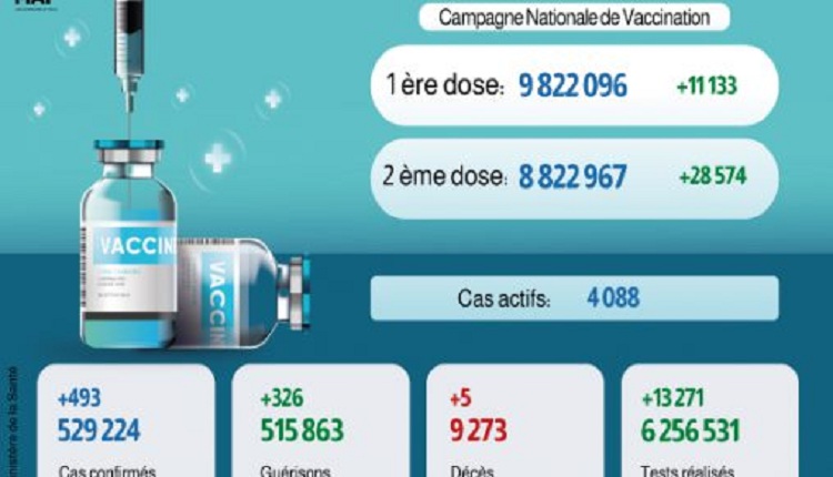 The post 493 nouveaux cas, plus de 8,8 millions complètement vaccinés appeared first on MapMarrakech.