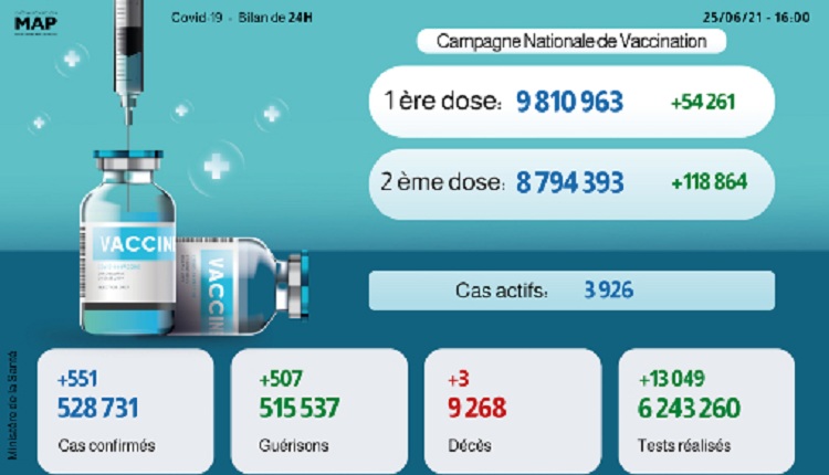 The post 551 nouveaux cas, plus de 8,7 millions complètement vaccinés appeared first on MapMarrakech.