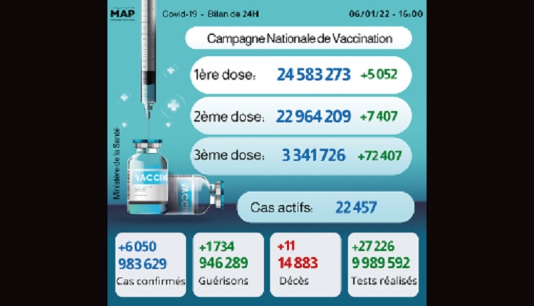 The post 6.050 cas, plus de 3,3 millions de personnes ont reçu trois doses appeared first on MapMarrakech.