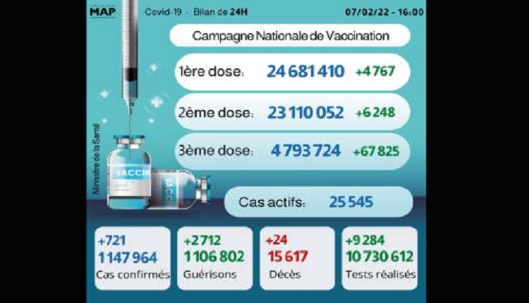 The post 721 cas, plus de 4,79 millions de personnes ont reçu trois doses appeared first on MapMarrakech.