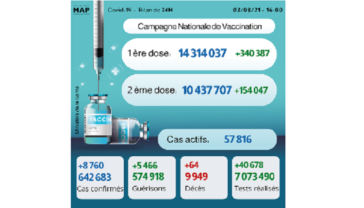 The post 8.760 cas, plus de 10,4 millions personnes complètement vaccinées appeared first on MapMarrakech.