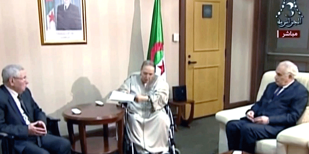 Le 11 mars, la veille de son retour au pays après une longue hospitalisation, il annonce qu’il «n’y aura pas de 5e mandat et il n’en a jamais été question pour moi», et «il n’y aura pas d’élection présidentielle le 18 avril prochain…».