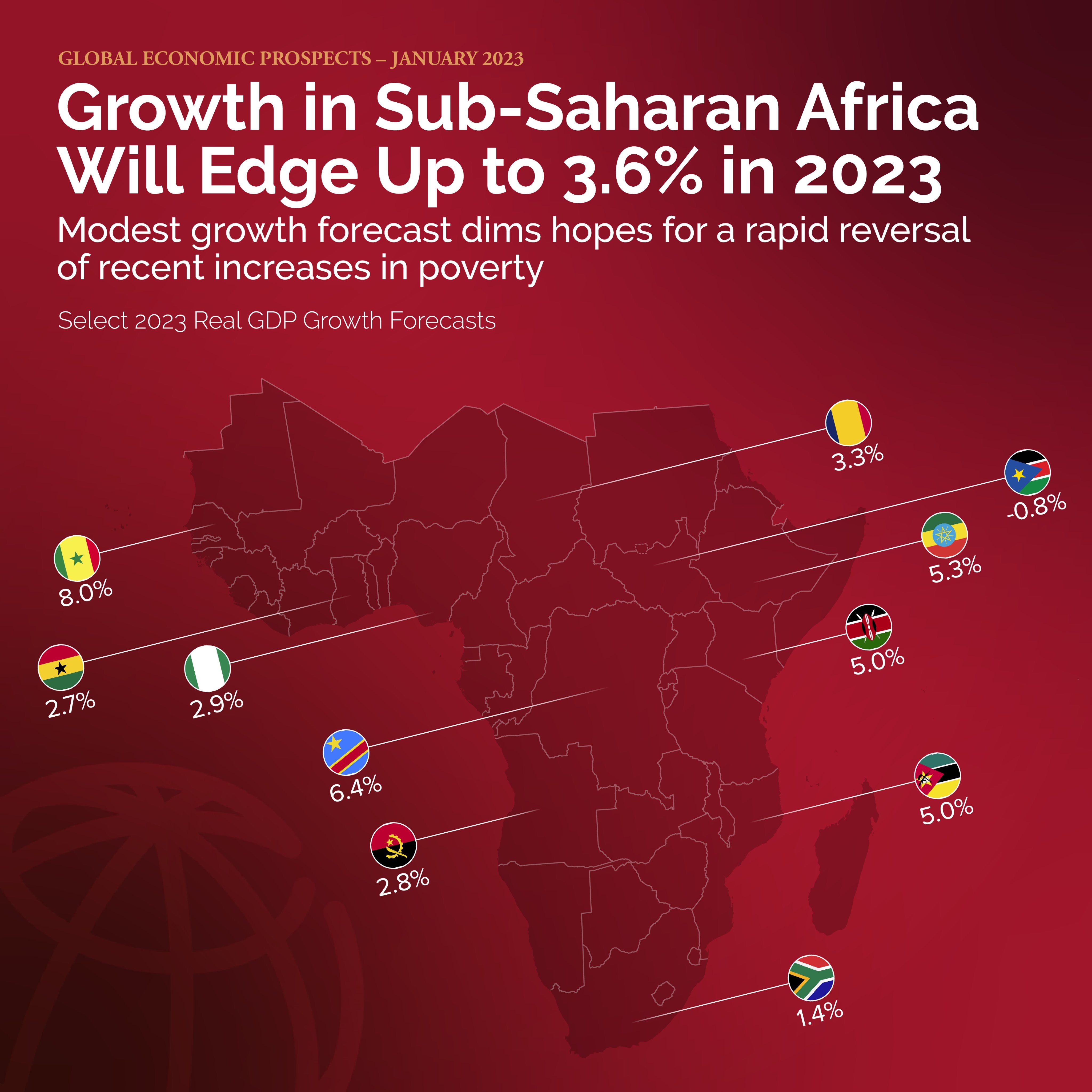 Le dernier rapport sur les Perspectives économiques de la Banque mondiale table sur une croissance de 3,6 % en 2023 pour les économies de la région.Le bout du tunnel est encore loin pour les économies de l’Afrique subsaharienne. Lourdement éprouvées durant l’année 2022, elles ne retrouveront pas leur dynamisme d’avant la pandémie de la Covid-19 en cette année 2023. Selon les dernières Perspectives économiques mondiales publiées ce mardi 10 janvier par la Banque mondiale, un ralentissement net et durable de l’activité va frapper durement les pays en développement.
