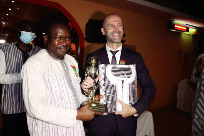 La nation burkinabè a témoigné sa reconnaissance à Tanguy Denieul, directeur sortant de l’Agence française de développement (AFD), le mardi 15 septembre 2020 à Ouagadougou. Cela, en guise de reconnaissance de ses efforts fournis pour accompagner le développement du Burkina Faso. Au nom du chef de l’Etat, le ministre de l’Economie, des Finances et du Développement, Lassané Kaboré, l’a élevé au grade de Chevalier de l’ordre de l’Etalon. Durant les quatre années passées au pays des Hommes intègres, Tanguy Denieul et son équipe ont contribué qualitativement et quantitativement au dialogue dans ce partenariat et à l’animation des mécanismes de suivi des projets et programmes de développement, selon le ministre Kaboré. Depuis 2016, M. Denieul a permis au Burkina Faso et à l’AFD de réaliser plus d’une vingtaine de projets et programmes de développement pour un volume financier de près de 350 milliards FCFA. Les secteurs de développement concernés, à écouter le chef de département en charge de l’économie, sont notamment l’éducation, l’énergie, l’eau et l’assainissement, l’agriculture, le développement urbain et la gouvernance. Pour le directeur sortant de l’AFD, cette distinction est le plus beau cadeau qu’il reçoit à la veille de son départ du pays des Hommes intègres pour lequel il dit avoir une attache. Il a confié qu’il gardera en souvenir le beau sourire et la gentillesse du peuple burkinabè. Tanguy Denieul a surtout salué la résilience des Burkinabè face aux nombreuses difficultés liées non seulement à la crise sanitaire provoquée par le coronavirus mais aussi le défi sécuritaire. Lassané Kaboré a souhaité que Gilles Chausse, directeur entrant de l’AFD, poursuive les bonnes actions entreprises par son prédécesseur. Tout en lui rassurant qu’il bénéficiera d’une franche collaboration et de la disponibilité des acteurs au sein des différentes administrations du Burkina Faso, le ministre lui a souhaité la bienvenue au pays des Hommes intègres.