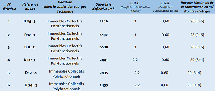 Les références et les caractéristiques techniques desdits lots sont indiquées ci-après :
