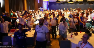 Les supporters madrilènes de la Peña Casa Madridista étaient au rendez-vous le 28 mai 2022 pour suivre en direct dans un Palace Casablanca la finale de la champion’s League opposant leur club préféré à l’équipe anglaise de Liverpool. Cette soirée organisée par la Peña Casa Madridista a réuni les supporters du Real Madrid et des anciens internationaux marocains qui n’ont pas manqué l’occasion pour exprimer leur total soutien au Wydad de Casablanca. Ce dernier disputera ce lundi son match contre Al Ahly pour le compte de la finale de la Ligue des champions d’Afrique. Coulisse et ambiance en vidéo …