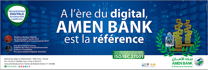 En effet, AMEN BANK a été désignée «La Meilleure Banque Digitale Tunisie 2019» par Global Banking & Finance Review https://www.globalbankingandfinance.com/global-banking-finance-awards-2019-award-winners/