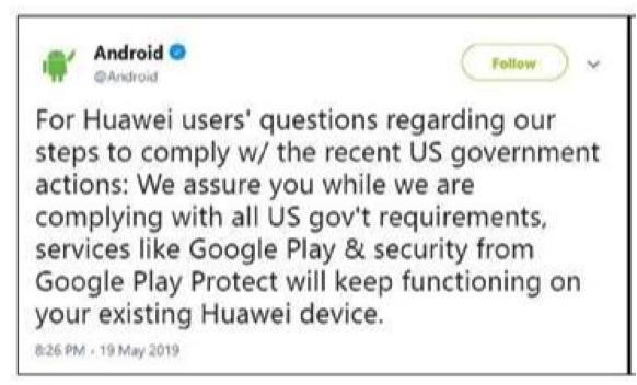 Après la décision catastrophique de Donald TRUMP de placer Huawei sur la liste noire et bannir toutes possibilités de business entre le groupe chinois et les entreprises américaines, Android a rassuré les utilisateurs des smartphones Android Huawei, en confirmant que ses services tels que Google Play et sécurité continueront de fonctionner sur les appareils Huawei existants.