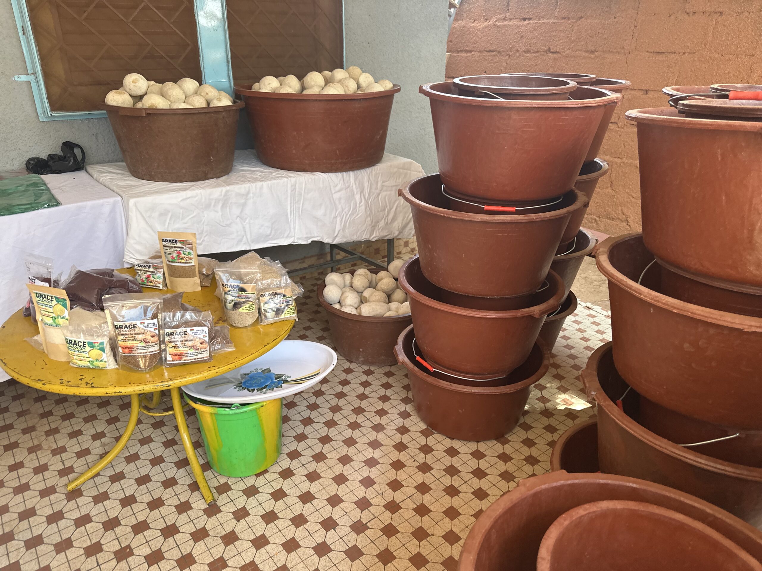La formation en saponification a été assurée par Madame Thérèse Bako/Kanzié, experte reconnue dans la fabrication du savon. Avec pédagogie, elle a guidé les participants à travers toutes les étapes du processus : choix des ingrédients, manipulation sécurisée de la soude caustique, formulation des recettes, ajout de parfums et de colorants, moulage et séchage. Les femmes ont pu expérimenter la fabrication du savon kabacourou, tout en apprenant les bonnes pratiques d’hygiène et de sécurité. Cette approche pratique a permis aux participants d’acquérir non seulement des connaissances théoriques, mais aussi une véritable maîtrise technique, condition indispensable pour se lancer dans la production artisanale ou semi-industrielle.