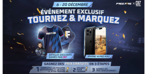 Depuis le 2 décembre, les gamers Free Fire peuvent goûter à l’ambiance électrisante de la saison de foot en cours en direct de leur smartphone, à travers une gamme de skins en jeu qui les mettra au cœur de l’action. Jusqu’au 20 décembre, les joueurs peuvent réaliser des missions du jour ; ils n’ont qu’à se connecter et se joindre à l’évènement «Spin and Score» pour obtenir les jetons. En faisant tourner le jeton, les joueurs peuvent gagner des primes exclusives – y compris des produits exclusifs de Free Fire x CR7 et l’iPhone 14 Pro Max – et aussi déverrouiller un nouveau sac à dos et d’autres objets de jeu.