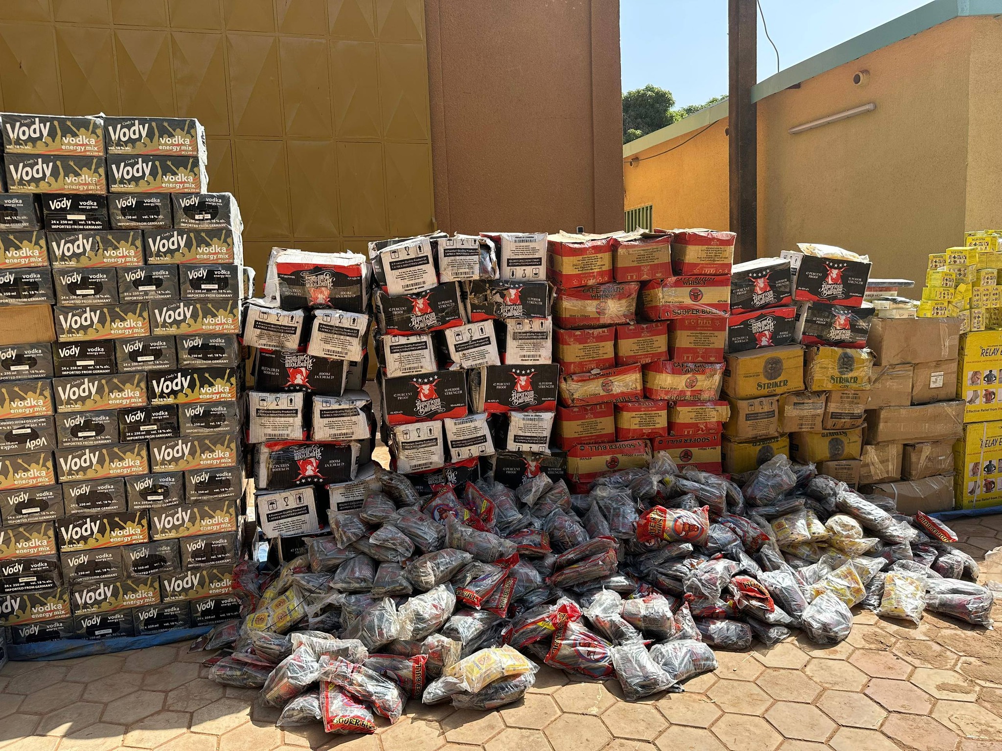 La Coordination nationale de lutte contre la fraude (CNLF) a présenté ce mardi 27 janvier 2026 une saisie massive de produits frauduleux et prohibés. Les opérations ont permis d’intercepter 69 sacs de cyanure de 50 kg, plus de 300 cartons de boissons énergisantes alcoolisées, 35 cartons de cigarettes non homologuées, 150 cartons de faux vins, ainsi que du sucre et des bidons d’huile alimentaire, principalement dans la zone de Bittou.
