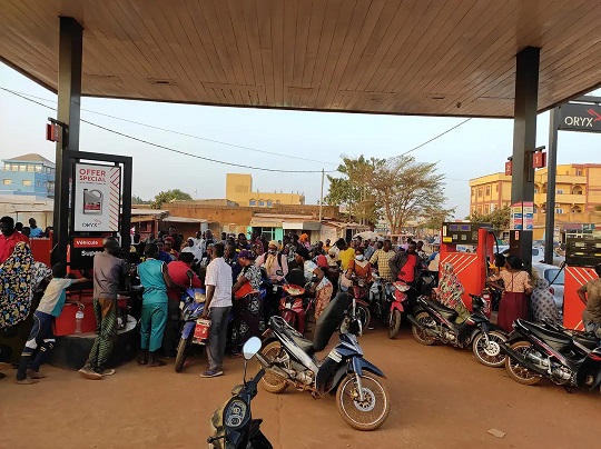 Au quartier Tanghin, de longues files d’attentes se sont dressées sur plusieurs kilomètres devant les stations, perturbant ainsi la circulation. Les zigzags des motocyclistes pour se frayer un chemin entraînent une symphonie des klaxons incessants des automobilistes.