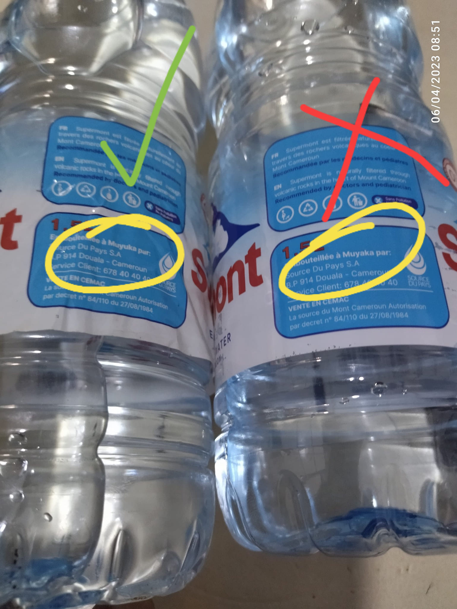 Depuis plusieurs jours sur la toile les bouteilles de l’eau minérale Supermont circule. Pour cause, il est inscrit sur les bouteilles « embouteillée à MUYAKA par Source Du Pays S.A ». ce qui pose problème c’est le lieu Muyaka qui n’existe pas au Cameroun.