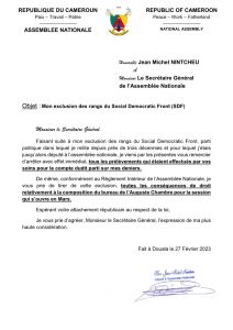 En réponse, Jean Michel Nintcheu a fait une sortie. Le député vient d’adresser une correspondance au secrétaire général de l’Assemblée nationale dans laquelle il demande suspendre les versements prélevés sur son salaire pour le compte du SDF.