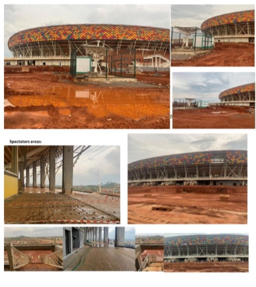 « A 54 jours du début de la Coupe d’Afrique des Nations TotalEnergies 2021, je dois porter à votre attention – pour suites utiles de votre part – de sérieuses inquiétudes concernant l’organisation du tournoi, en particulier en ce qui concerne les points suivants : 1- Olembé : Selon le rapport photos (état du stade au 16.11.2021 en phot. Ndlr.) l’état d’avancement des extérieurs du stade d’Olembé, dont la livraison est promise pour le 30 novembre 2021, semble sans progrès depuis ma dernière visite datant du 22 octobre», regrette le Secrétaire général Véron Mosengo–Omba.