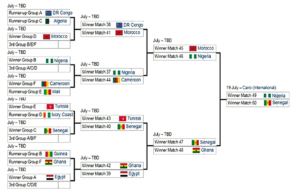 Une 32e édition particulière, d’abord en raison de toute la polémique entraînant sa délocalisation, puisque initialement prévue au Cameroun, avant que la CAF ne décide de «l’offrir» à l’Egypte, mais surtout du fait que c’est la première CAN qui se disputera avec 24 équipes réparties sur six groupes, alors qu’elle se disputait avec 16 nations réparties sur 4 groupes. De ce fait, un nouveau tour s’invite dans la compétition, puisque les équipes qualifiées au second tour disputeront désormais un 8e de finale.
