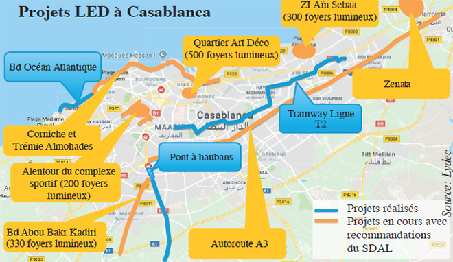 L’éclairage public est un poste énergétivore et surtout budgétivore. Au Maroc, il représente plus de 40% de la consommation énergétique des communes urbaines (selon l’ONEE). A Casablanca, les 151.000 points lumineux installés consomment plus de 127 millions de kWh/an, soit plus de 162 millions de DH par an en facture d’électricité. Une proportion près de deux fois plus importante que la moyenne européenne due à la vétusté du parc d’éclairage marocain, qui totalise un million de points lumineux.