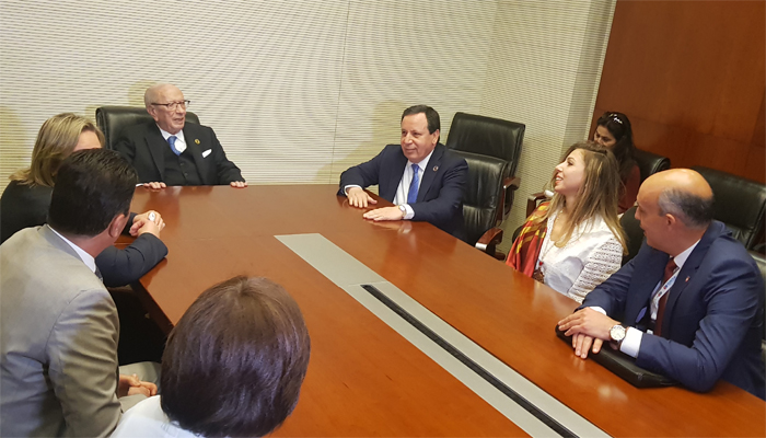 Puis, sur un ton amusé, le président Caïd Essebsi demandera au groupe : »Bon avez-vous des messages à transmettre en Tunisie ? Je vous le demande, parce que ces dernier temps, je suis souvent sollicité en messager (Bostaji) pour relayer des messages. »