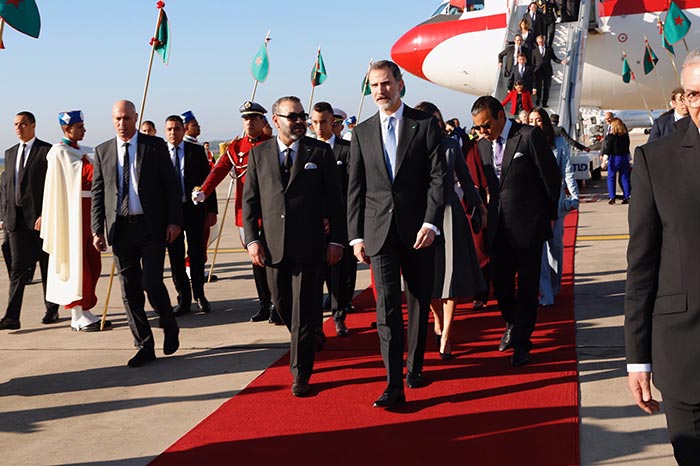 SM le Roi Don Felipe VI et la Reine Dona Letizia ont également été salués par le directeur du secrétariat particulier du Souverain, le Chambellan de SM le Roi, le porte-parole du Palais Royal et historiographe du Royaume, le directeur de la Cour Royale, des membres du Cabinet Royal, le doyen du corps diplomatique accrédité à Rabat, les chefs des missions diplomatiques européennes accrédités à Rabat, les officiers supérieurs de l’état-major général des Forces Armées Royales, le directeur général de la Sûreté nationale et de la Surveillance du territoire national, le directeur général des Etudes et de la Documentation, le Wali de la région de Rabat-Salé-Kénitra, les élus locaux et les représentants des autorités civiles et militaires de la wilaya.