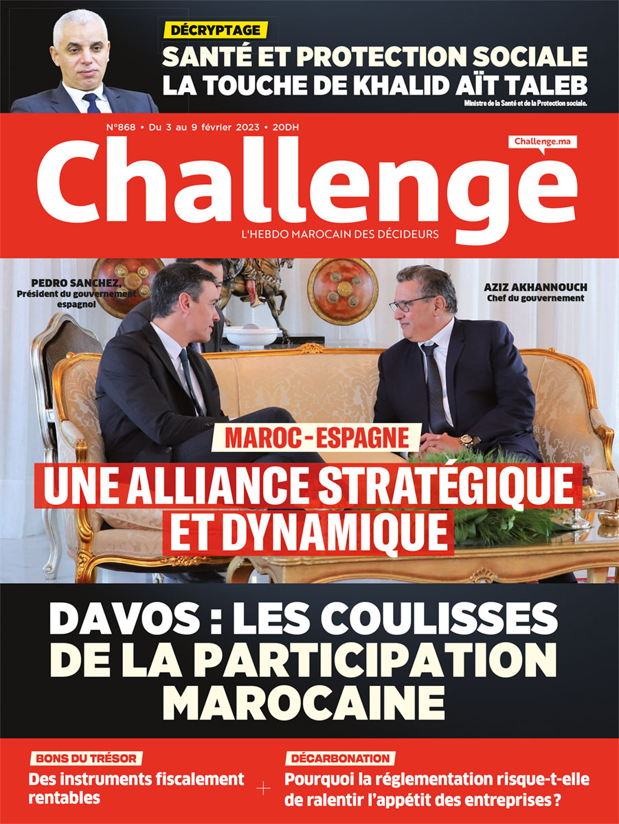 Dossier Davos : les coulisses de la participation marocaine Maroc–EspagneUne alliance stratégique et dynamique Santé et protection sociale La touche de Khalid Aït Taleb INTERVIEWAbdelhamid Souiri Président de la FIMME Marocains du MondeJamal Belahrach, Président-fondateur de la Maison de la diaspora marocaine Actualité DiplomatieDes progrès à consolider Sommet de DakarLa sécurité alimentaire est uneAuteur: Adama Sylla