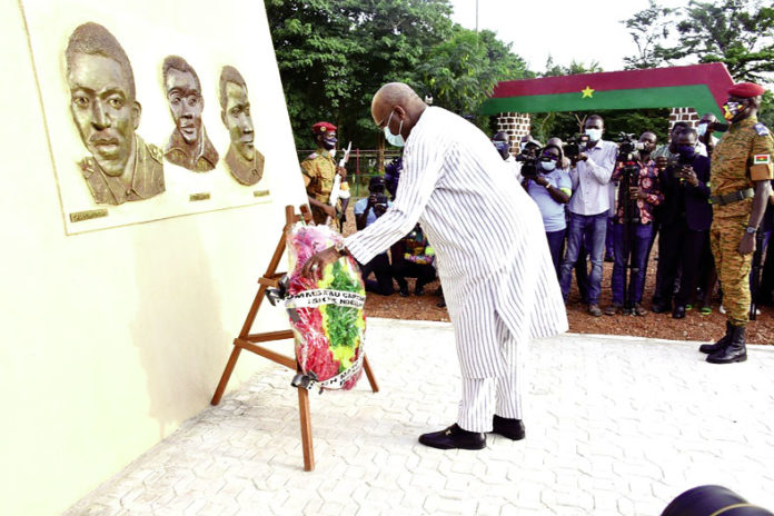 Cela fait 33 ans, que le Burkina Faso a perdu le père de la Révolution d’août 1983, Thomas Sankara. A l’occasion de la commémoration de cet anniversaire, le Président du Faso, Roch Marc Christian Kaboré, a salué la mémoire des victimes du coût d’Etat du 15 octobre 1987. A cet effet, une cérémonie de dépôt de gerbe de fleurs a été organisée, le 15 octobre 2020 sur le site de l’ancien site du Conseil de l’Entente où l’assassinat a eu lieu, à Ouagadougou. Le président Kaboré a indiqué que ce dépôt de gerbe de fleurs est un geste à la fois historique et symbolique. A l’entendre, il était normal de rendre hommage à ce digne fils qui a conduit le Burkina Faso durant quelques années. « En si peu de temps, ce qu’il a apporté comme bienfaits au niveau de notre pays a été plus que des années qu’ont fait des régimes au Burkina Faso », a confié le président Kaboré. Pour lui, Sankara a marqué l’histoire de son pays et de l’Afrique par sa conception de la véritable indépendance. Toute chose, a-t-il fait savoir, qui allie indépendance politique et économique dont l’absence constituerait un développement difficile pour les pays africains.