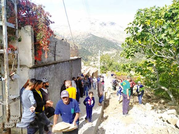 Pendant près d’un mois, l’opération se poursuit ; chaque vendredi, des centaines de personnes natives du village y convergent pour démolir les murs et même les maisons gênant toute extension et élargissement de la voie principale qui va traverser le village du sud au nord, en passant par Ameziav pour rejoindre l’autre côté nord, en contrebas, la source noire ou «Ainsar averkane» et la route carrossable datant de l’ère coloniale.