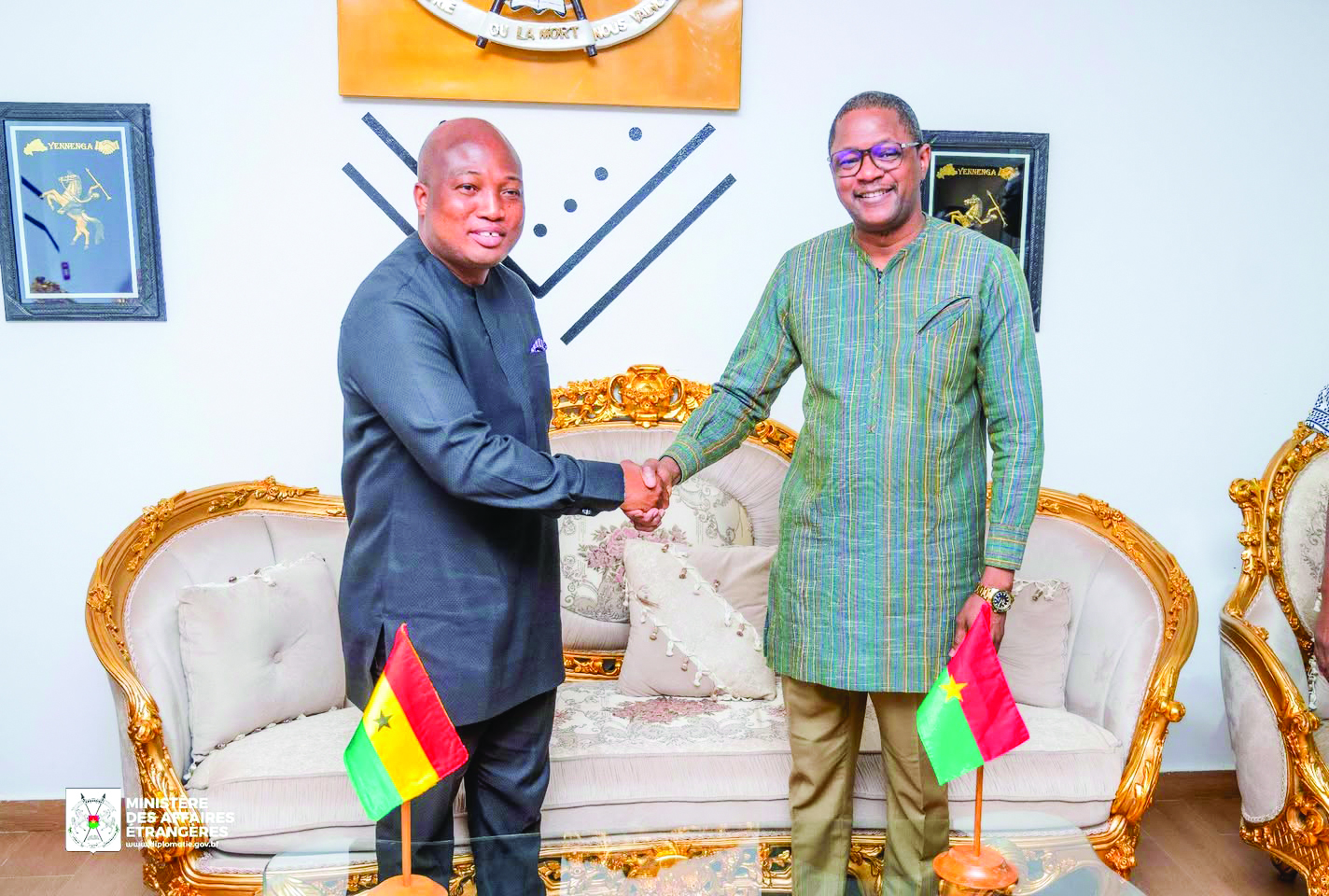 Ils ont été accueillis à l’aéroport international de Ouagadougou par le ministre des Affaires étrangères, Karamoko Jean Marie Traoré. La délégation ghanéenne est en visite au Burkina Faso, dans le cadre de la réunion ministérielle de la 13e Commission mixte de coopération entre le Burkina Faso et la République du Ghana, qui se tiendra demain 20 février 2026. Cette rencontre devra permettre de formaliser les conclusions des travaux de la réunion préparatoire des experts tenue en octobre 2025, notamment la signature de plusieurs projets d’accords et de documents officiels, pour davantage dynamiser la coopération et raffermir les liens forts d’amitié et de fraternité qui lient les deux pays.