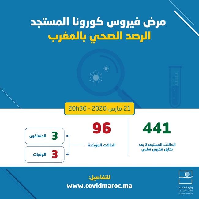 Le ministère de la santé invite les citoyennes et les citoyens à respecter les règles d’hygiène et de sécurité sanitaire ainsi que les mesures préventives prises par les autorités marocaines en faisant preuve de responsabilité et de patriotisme.