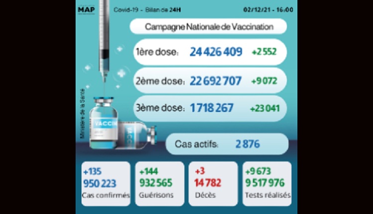 The post Covid-19: 135 nouveaux cas, plus de 24,426 millions primo-vaccinés appeared first on MapMarrakech.