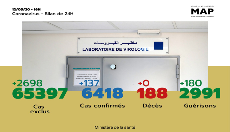 Cent trente-sept (137) nouveaux cas d’infection au coronavirus (Covid-19) ont été confirmés au Maroc au cours des dernières 24 heures, portant à 6.418 le nombre total des cas de contamination, a annoncé mardi le ministère de la Santé.