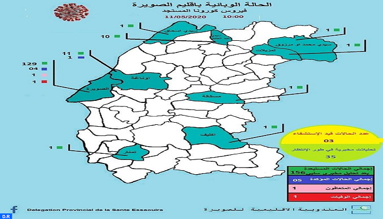 Un nouveau bilan de la Direction Provinciale de la Santé (DPS) fait ressortir que les cas exclus sont répartis entre la ville d’Essaouira (129) et les communes d’Ounagha (11) et de Sidi Abdeljalil (10) ainsi que celles de Sidi Ishaq, Sidi M’Hamed Ou Marzouq, Mzilate, Meskala, Aglif et de Tamanar avec un seul cas chacune.