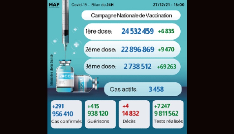 The post Covid-19: 291 cas, plus de 2,73 millions de personnes ont reçu 3 doses appeared first on MapMarrakech.