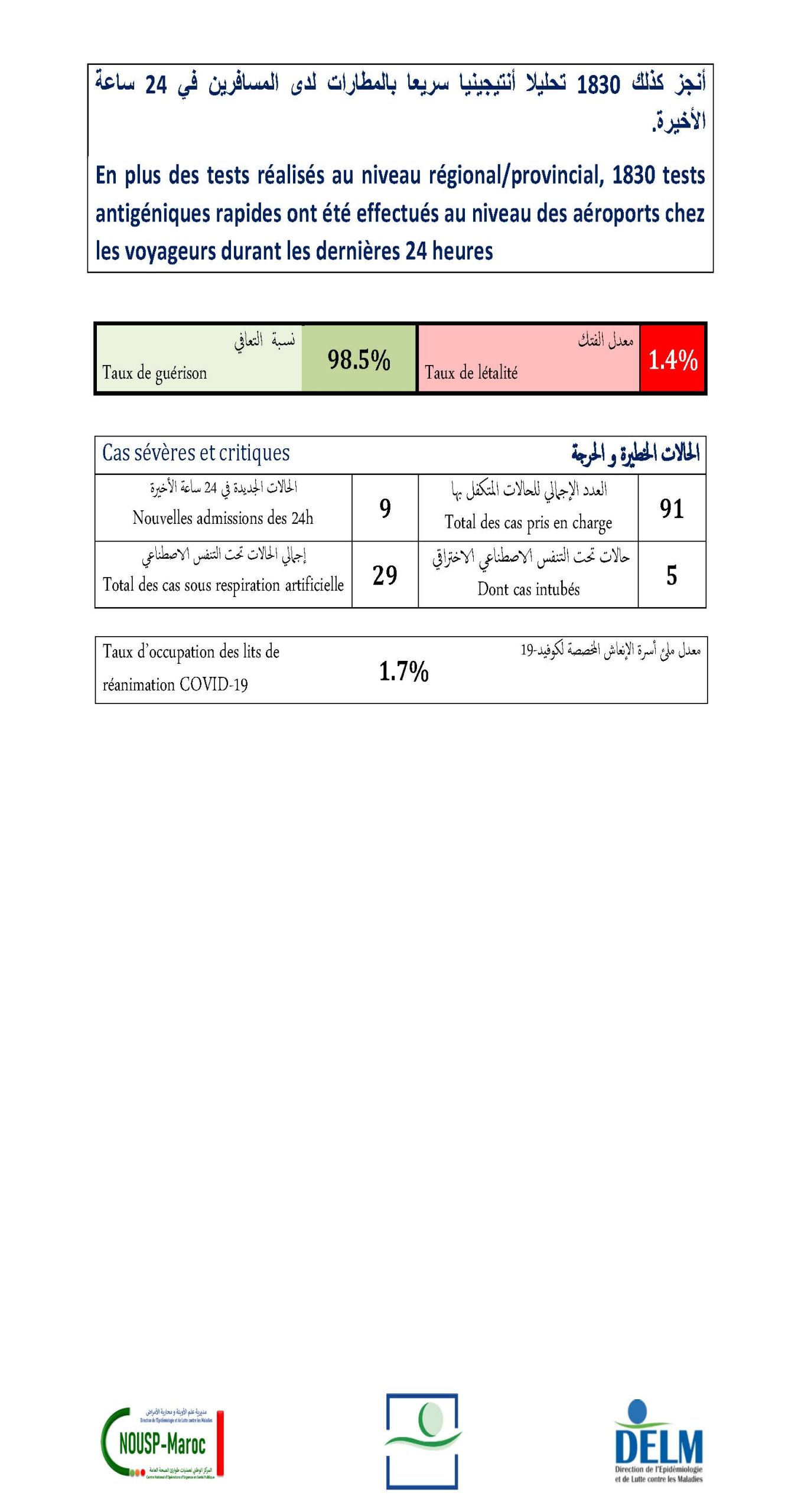 396 guérisons soit un cumul de 1 144 733 à ce jour.