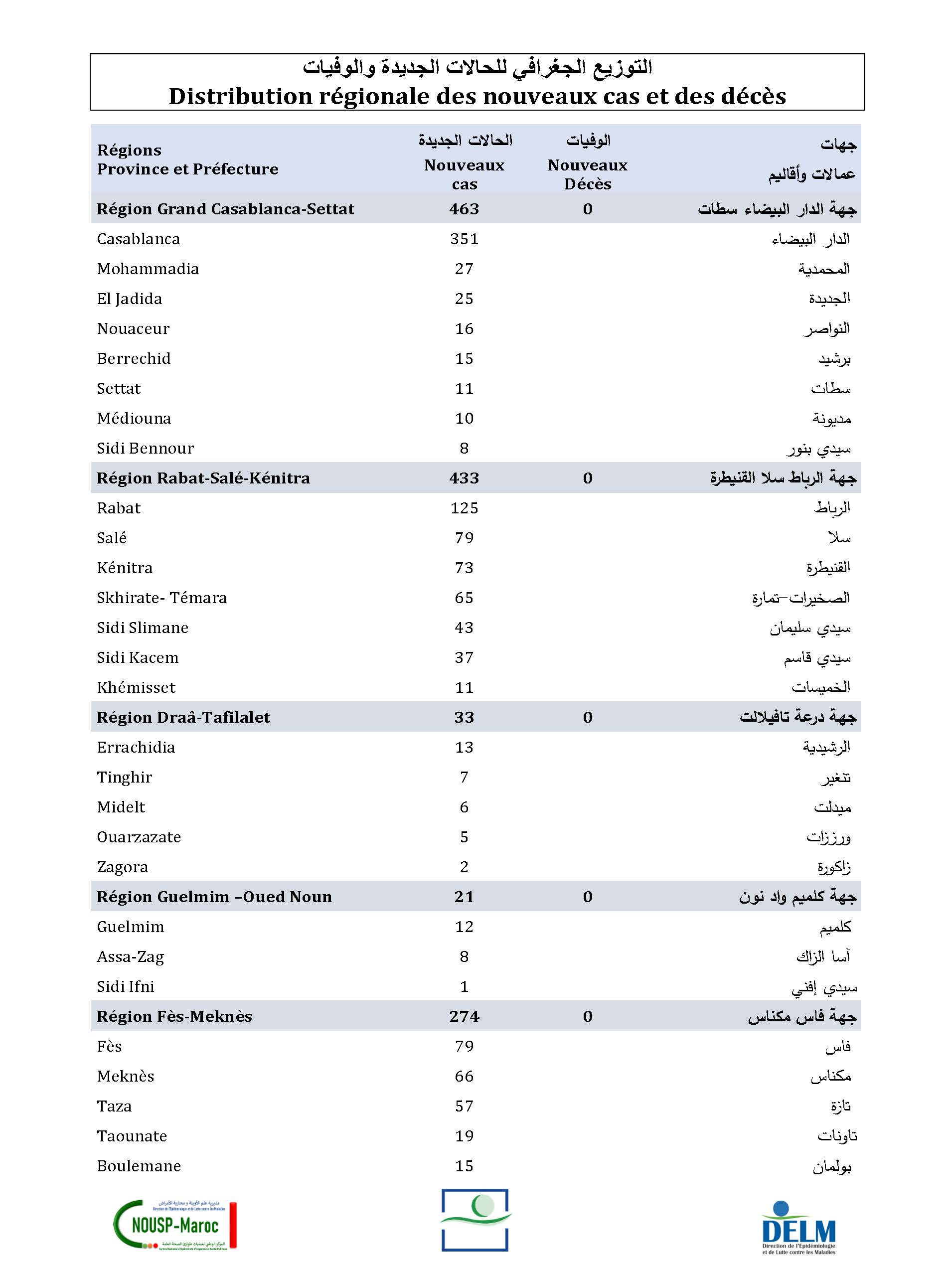 2.021 nouveaux cas soit un cumul de 1.248.856 cas à ce jour.