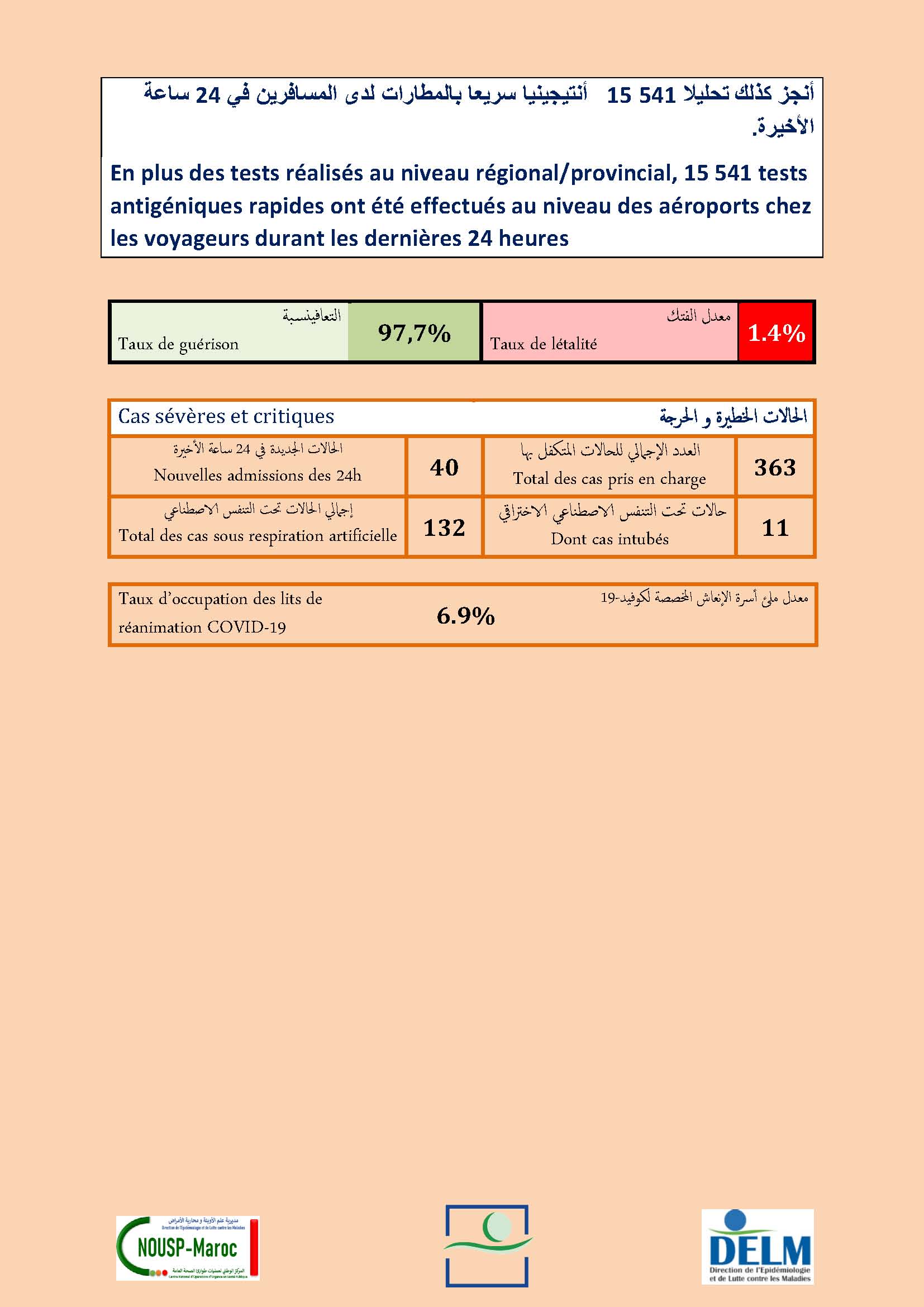 1.333 guérisons soit un cumul de 1.132.920 à ce jour.