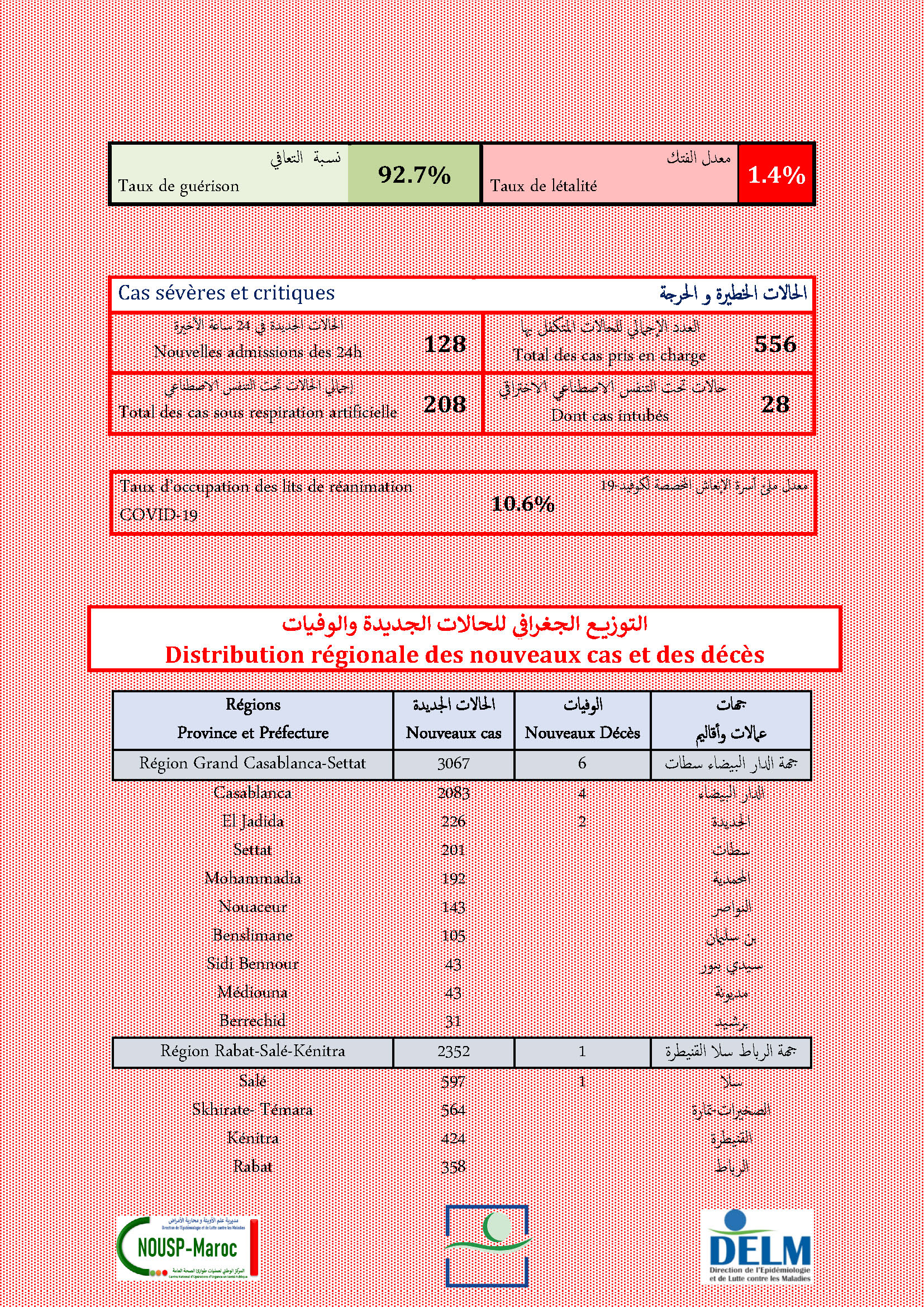 9 355 nouveaux cas soit un cumul de 1 068 941 cas à ce jour.