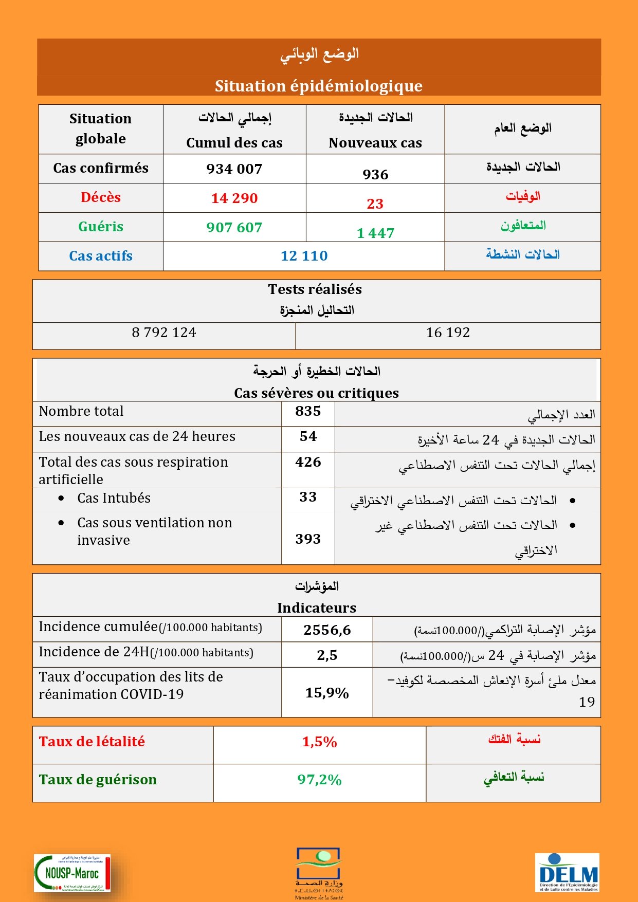 936 nouveaux cas soit un cumul de 934 007 cas à ce jour.