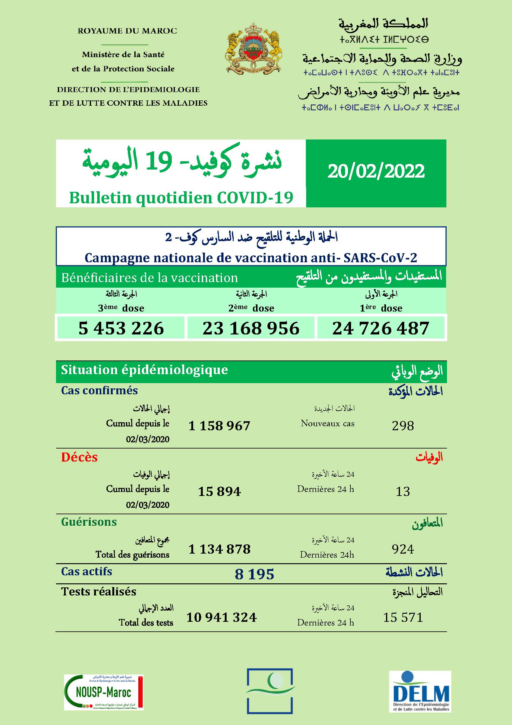 298 nouveaux cas soit un cumul de 1.158.967 cas à ce jour.